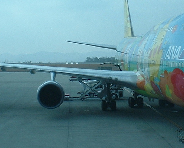 この日もANA(全日空)に運んでもらった私のKOTO。ポケモン飛行機に乗っちゃう箏なんて、めったにいないんじゃないかなぁ。