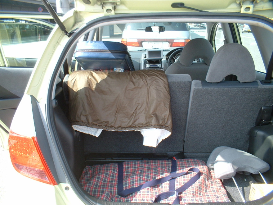 空港を出たらレンタカー。 こんなちっちゃな車で、全然OKなのよ! 後ろにもちゃんと人が乗れます。 |
